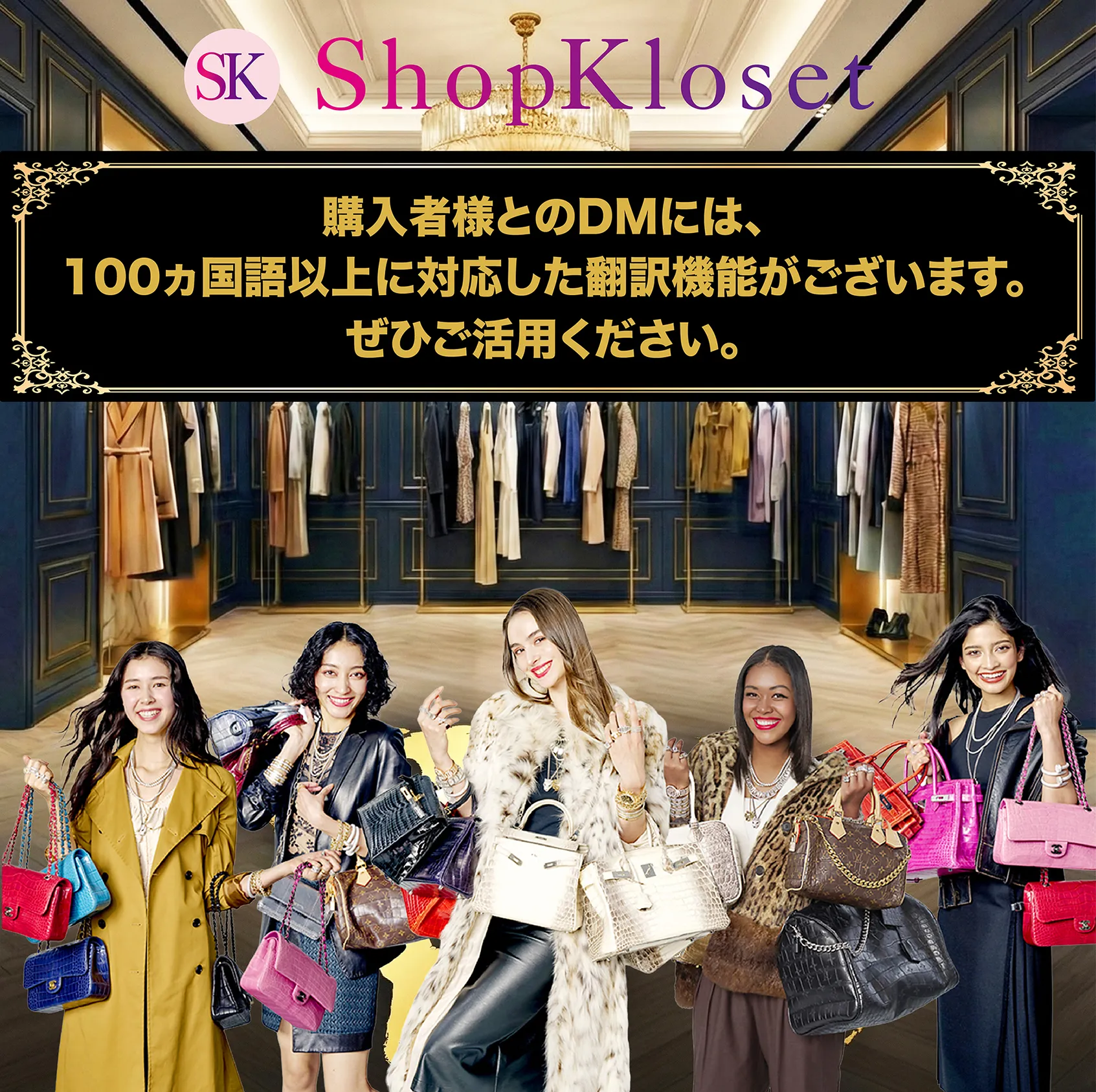 希少価値の高い、中古品・ヴィンテージ、もちろん新品もスムーズに出品することができ、マーケットを世界に広げることを可能にした画期的な新サービス、それが「ShopKloset」になります!